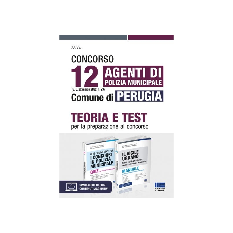 Il presente kit è un utilissimo strumento di preparazione alle prove concorsuali del bando indetto dal Comune di Perugia per 12 Agenti di Polizia municipale (cat. C) e pubblicato sulla Gazzetta Ufficiale del 22 marzo 2022, n. 23.