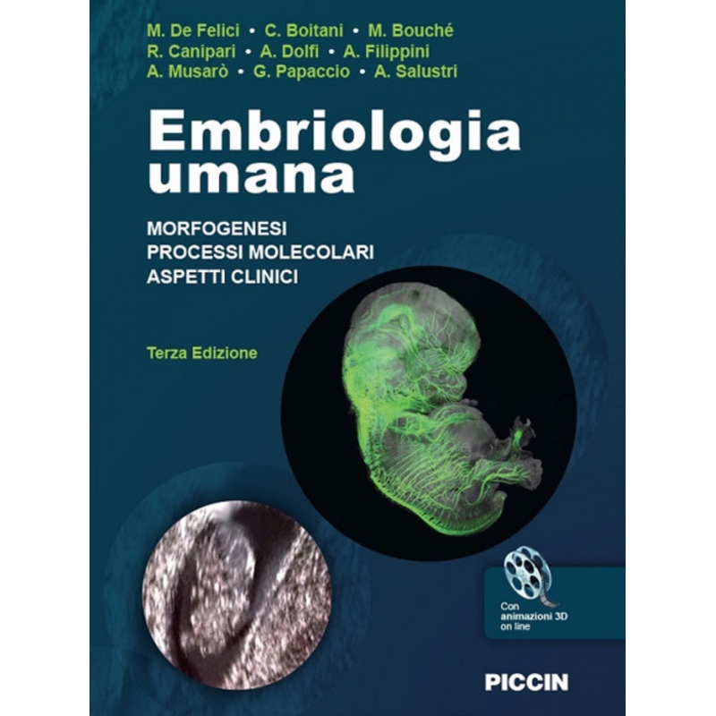 Dieci anni fa il nostro testo aveva anticipato questa esigenza in un panorama di testi di Embriologia che con pochissime eccezioni conteneva nozioni molecolari. La sezione Processi e Molecole, diventata in quasi tutti i Capitoli Processi e Molecole in Modelli Sperimentali, è rimasta per approfondire tematiche svolte in corsi di studio più specialistici. Abbiamo voluto completare questa edizione con un nuovo capitolo intitolato Breve Storia dell’Embriologia. Ci piacerebbe che i nostri studenti lo leggessero convinti che la storia di questa disciplina e dei suoi protagonisti è uno strumento formidabile per comprendere come si è giunti alle odierne conoscenze e quali furono gli esperimenti e le teorie che hanno dato importanti risposte al grande mistero dello sviluppo embrionale.Desideriamo infine ringraziare l’Editore e tutto lo staff editoriale, in particolare Lia Campolo, redattrice, Giorgio Fischetti, coordinatore delle animazioni, e il disegnatore Marco Marzola, senza la loro competenza e dedizione questo libro non sarebbe mai “nato”.