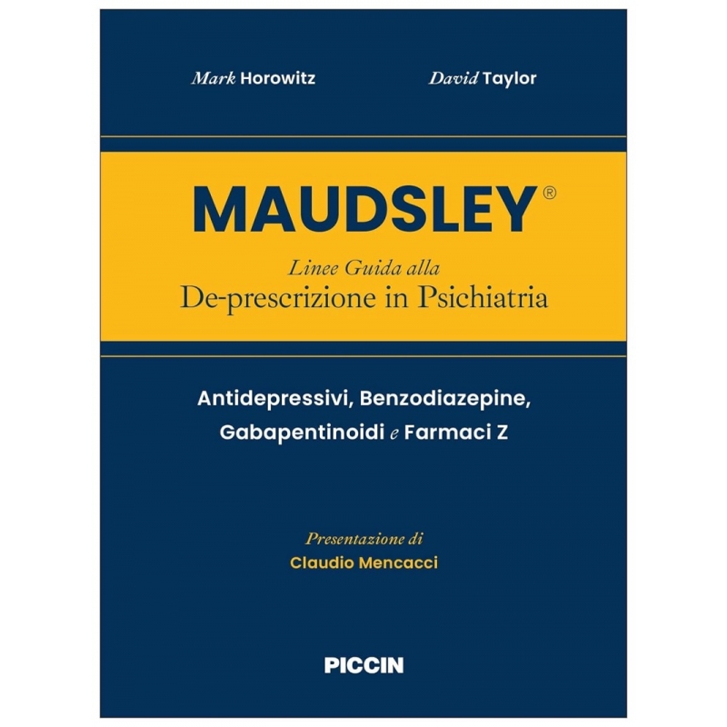Questa edizione italiana di Maudsley® Deprescribing Guidelines. Antidepressants, Benzodiazepines, Gabapentinoids and Z-drugs nasce per colmare un vuoto importante nella pratica clinica. È una guida clinica completa ed evidence-based per supportare l’interruzione sicura e graduale di 4 classi psicofarmacologiche (non sono inclusi le molecole antipsicotiche e gli stabilizzatori dell’umore). Il testo, che prevede un approccio evidence-based, fornisce una struttura pratica con schemi di tapering, tabelle, grafici e altri strumenti utili nella pratica clinica e basati sull’esperienza clinica specialistica del Maudsley Hospital (noto centro di riferimento internazionale). Il libro, che è sicuramente il riferimento più completo e sistematico oggi disponibile sulla de-prescrizione di antidepressivi, benzodiazepine, gabapentinoidi e farmaci Z, è uno strumento utile e applicabile per psichiatri, medici di medicina generale, farmacisti, infermieri e altri operatori della salute, in particolare quella mentale. Nel nostro Paese la de-prescrizione degli psicofarmaci non è allo stato attuale uniformemente implementata in tutte le strutture sanitarie, ma è in buona crescita come approccio e attenzione clinica nel campo della polifarmacoterapia e dell’appropriatezza terapeutica. Confidiamo nel fatto che questo volume porti il suo prezioso e documentato contributo formativo “all’arte della de-prescrizione”, intesa come parte integrante della pratica clinica e non come atto passivo o reattivo, accrescendo l’attenzione per la popolazione fragile, in particolare quella anziana, per la quale è indispensabile bilanciare efficacia terapeutica e rischi associati all’uso prolungato di psicofarmaci.